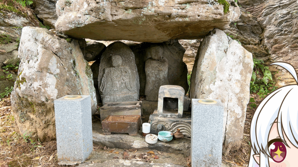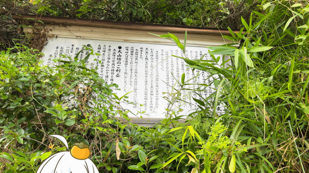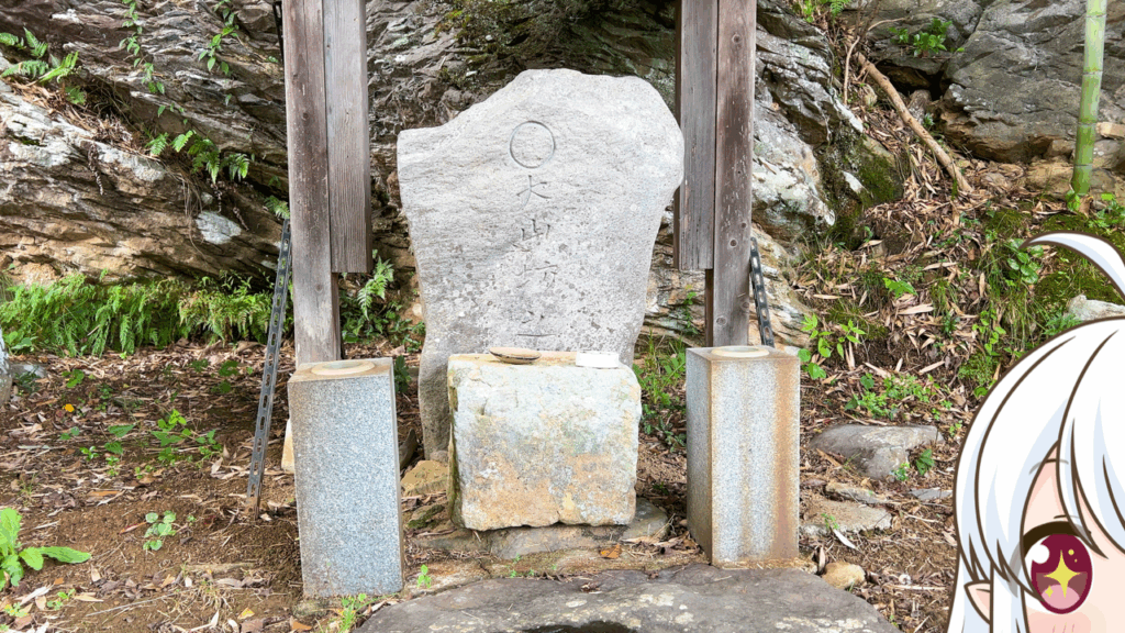 大山坊さんは若い時より学問をつみ修行に励んでいた方で、進学や就職の願いを込めて碑石の頭を撫でるとご利益があるとされ、腰より下の病にもご利益あるとされているんですっ