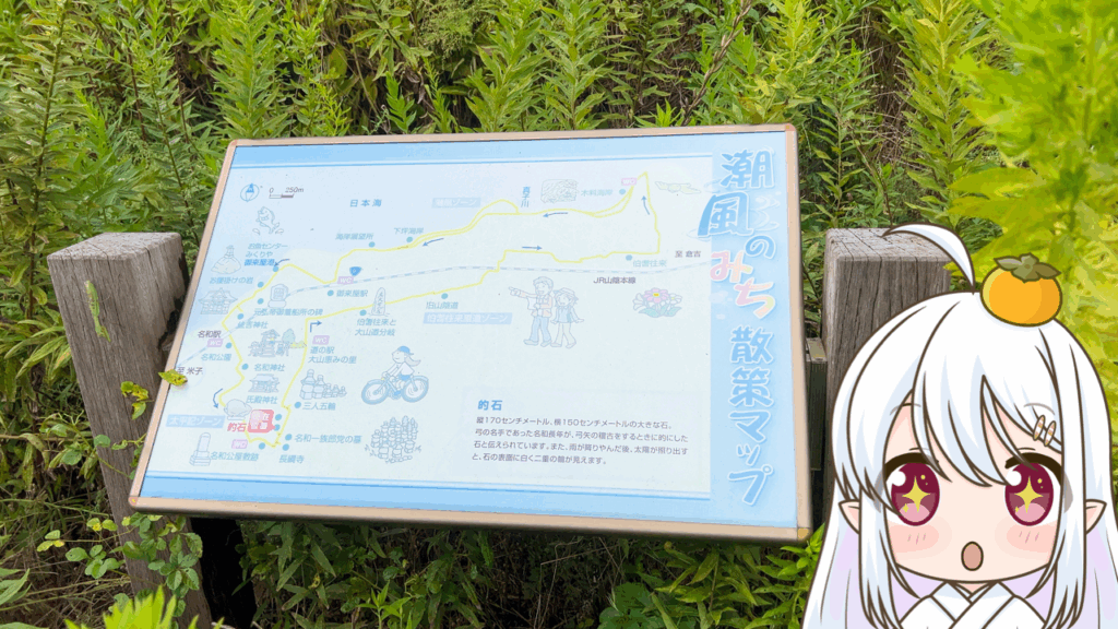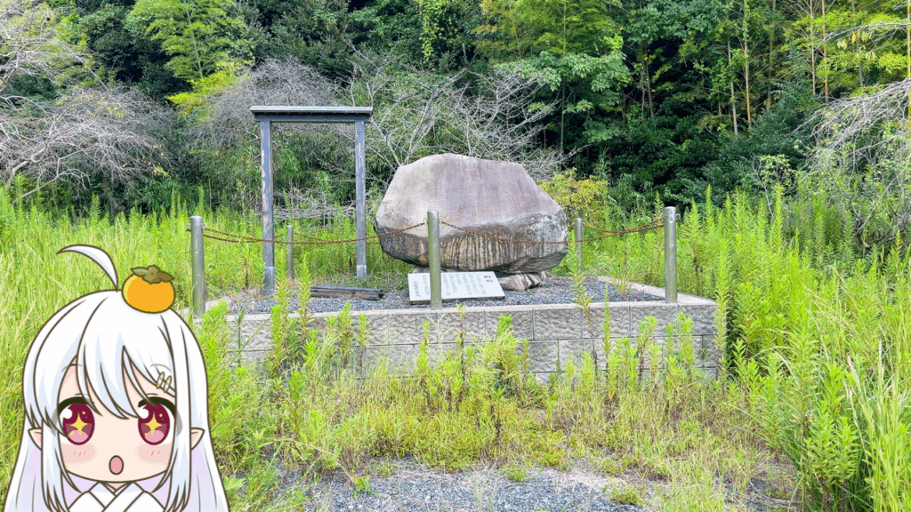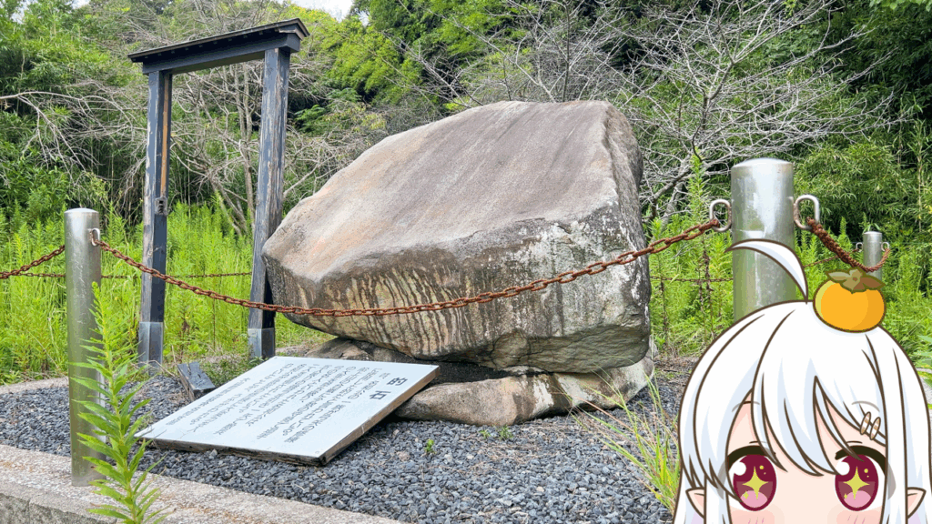 縦170センチ、横150センチもある大きな石で、雨が降りやんだ後に太陽が照り出すと、石の表面に白く二重の輪がくっきり見える、という逸話も残っているんだとか…