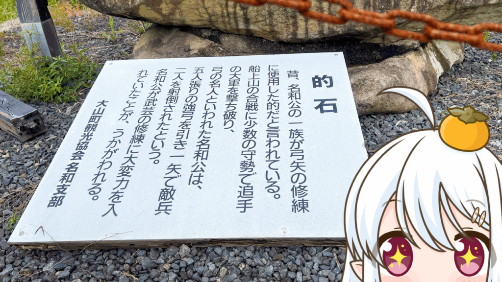 文化施設 歴史 鳥取県西伯郡大山町名和 0859-53-3110(大山町商工観光課) よ~く見ると的の跡が!? 名和長年が修行に励んだ伝説の大岩