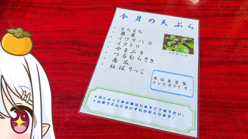 山菜の天ぷらに自家製の「三徳豆腐」、他にもこんなに沢山の種類がっ