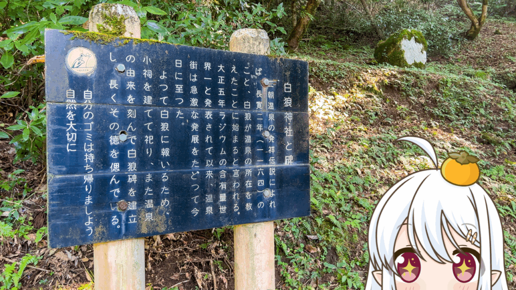 その白狼に報いるため小祠を建てて祀り、温泉の由来を刻んで白狼碑を建立しているそうですよっ