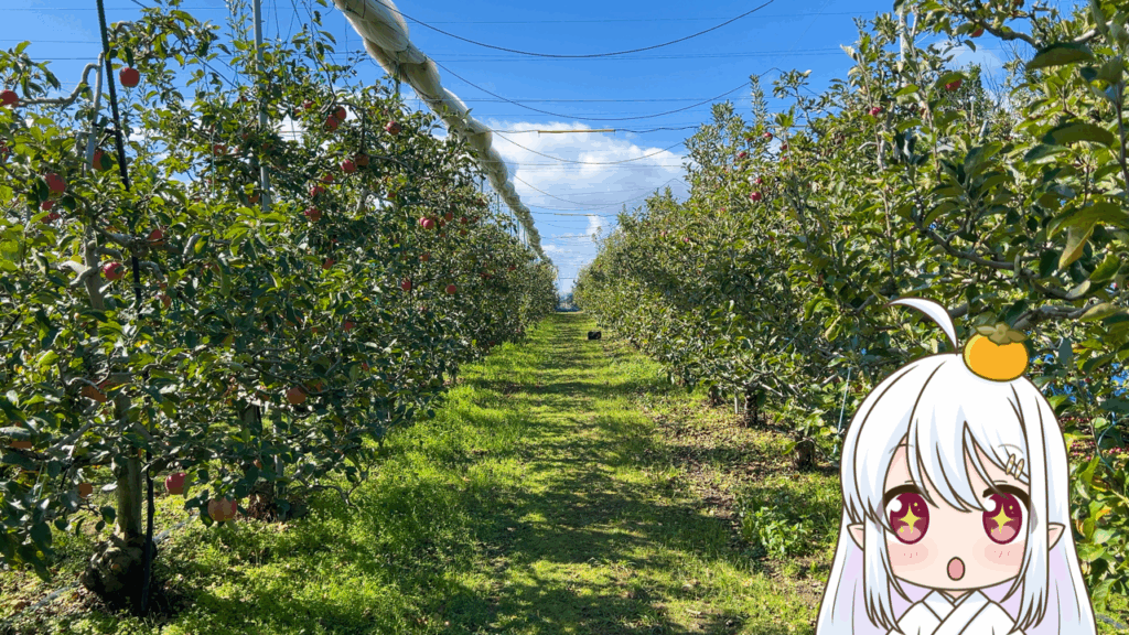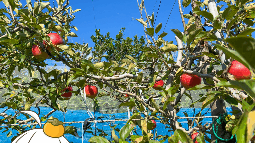 様々な種類のりんご狩りができる 秋映(あきばえ)や陽光 (ようこう)、王林(おうりん)、ふじなど約10種類のりんご狩りができる観光農園。 りんご園に漂う爽やかな…