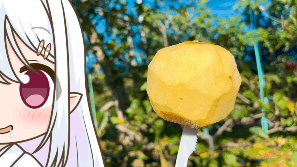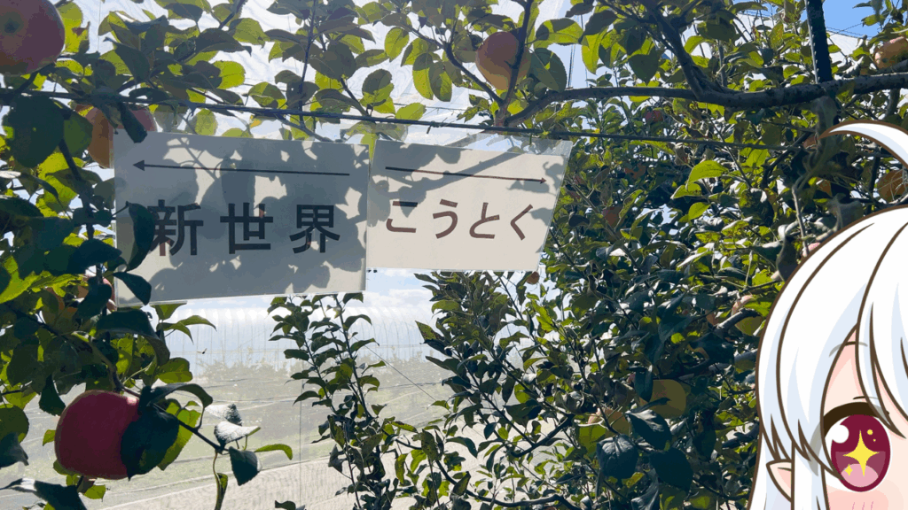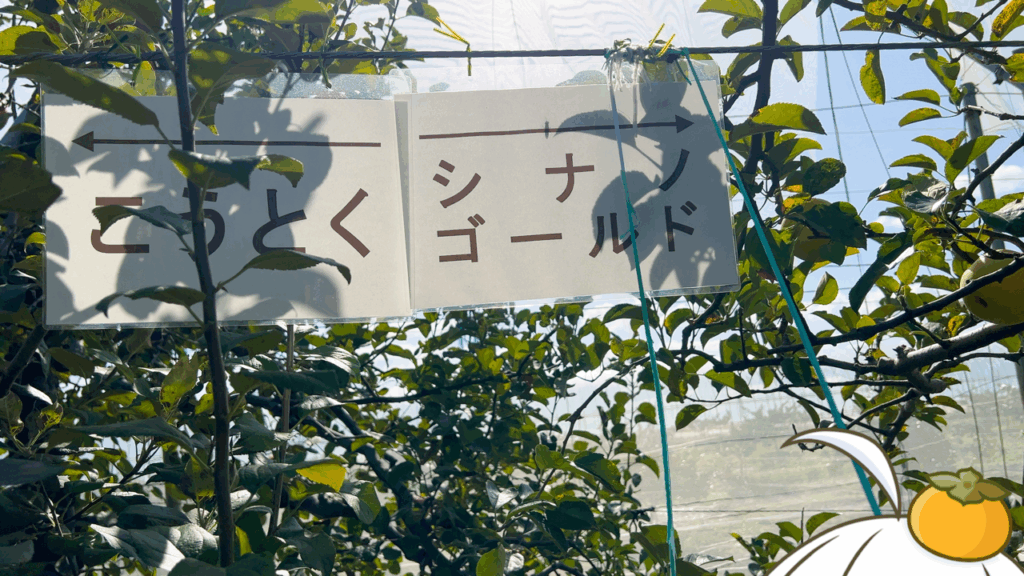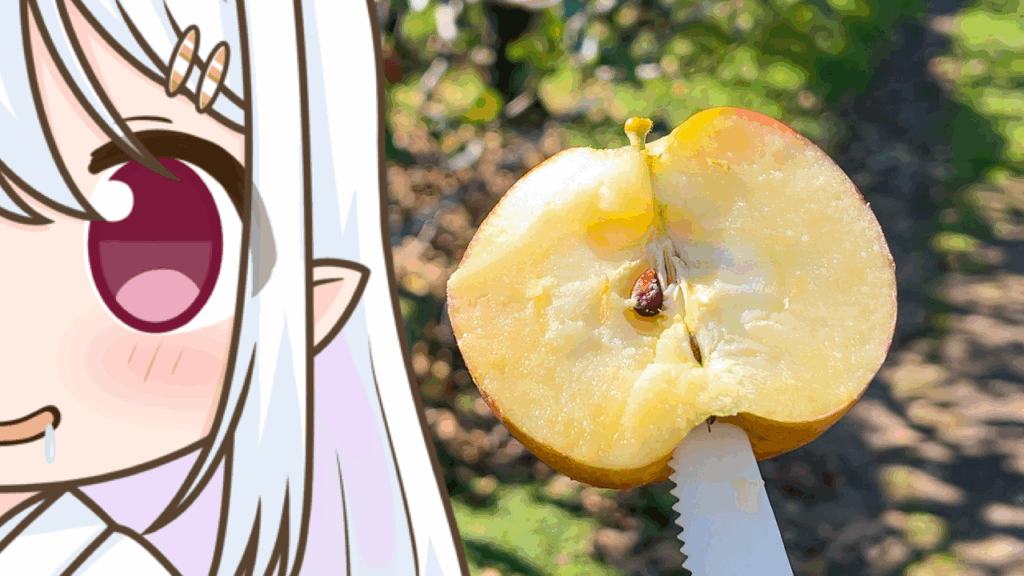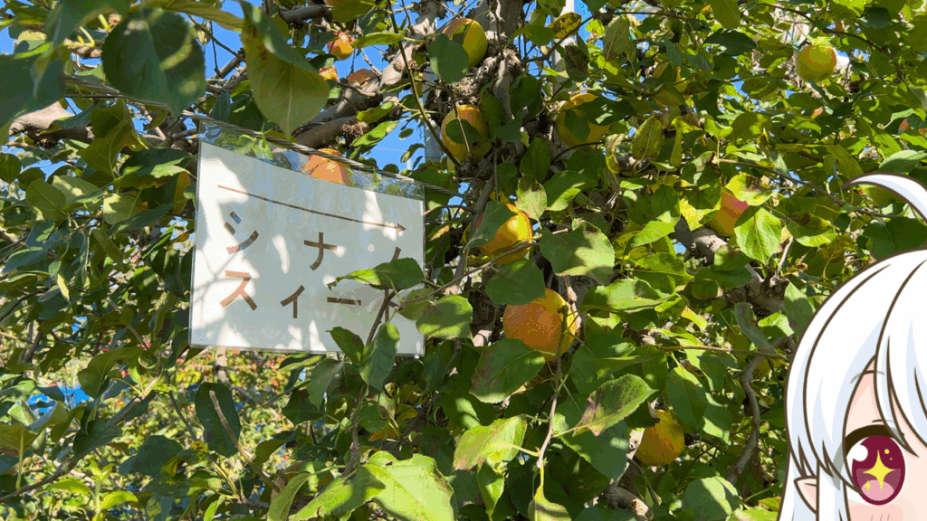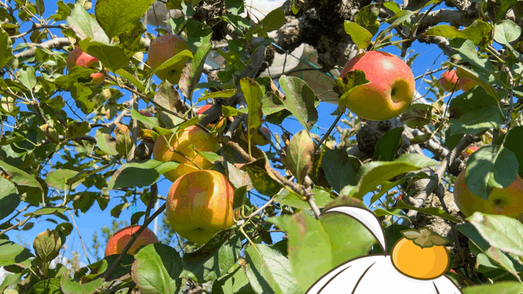 プラスチックのナイフを用意してもらえるので、気軽に手軽に「りんご狩り」を楽しむ事ができるんですよ〜