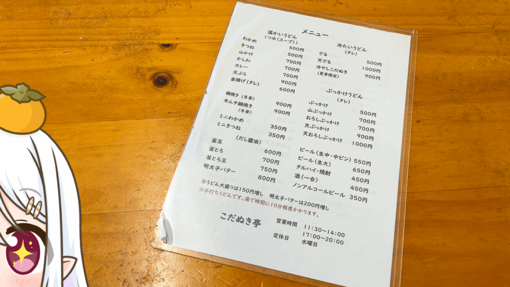 自家製タレを使ったぶっかけうどんが人気だが、ごはんものや定食も提供。