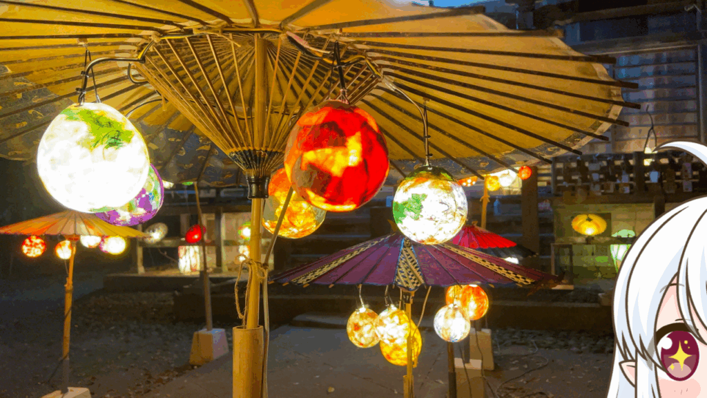 和傘や和紙玉の綺麗で優しい灯りに包まれながら、神秘的な「三朝温泉」をゆっくり巡ってみるのも楽しいかもしれませんね〜
