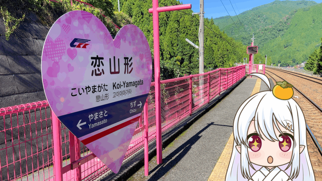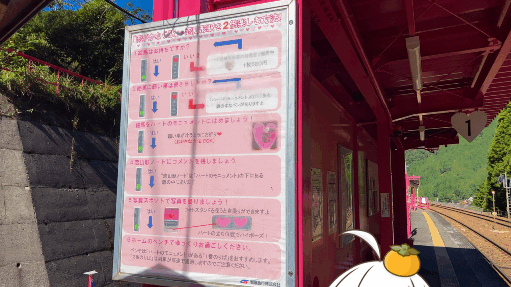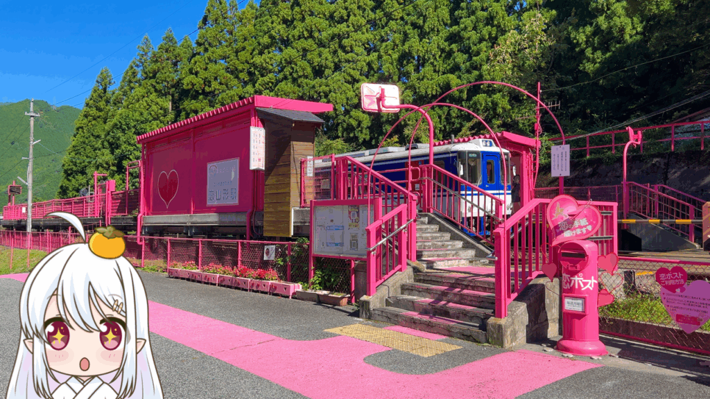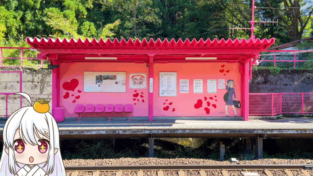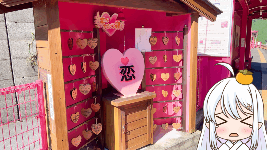 名前に「恋」が付く珍しい駅で、ピンクとハートがいっぱいのホームはとっても可愛いんですよ〜