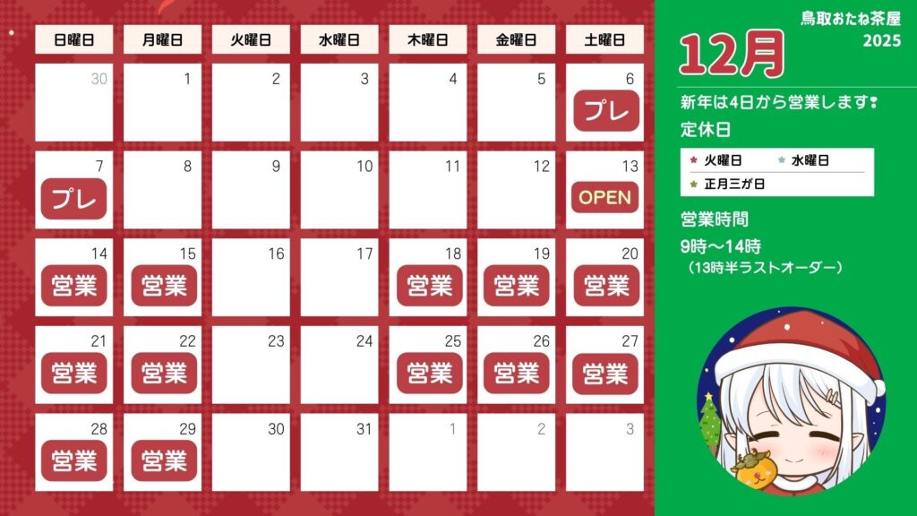 12月の営業カレンダーもぜひご覧下さいねっ