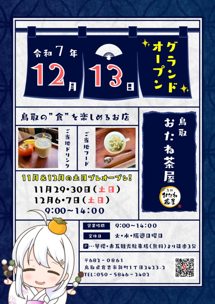 今日はいよいよ「倉吉市」の「おたね茶屋」がグランドオープンしますよっ❗️