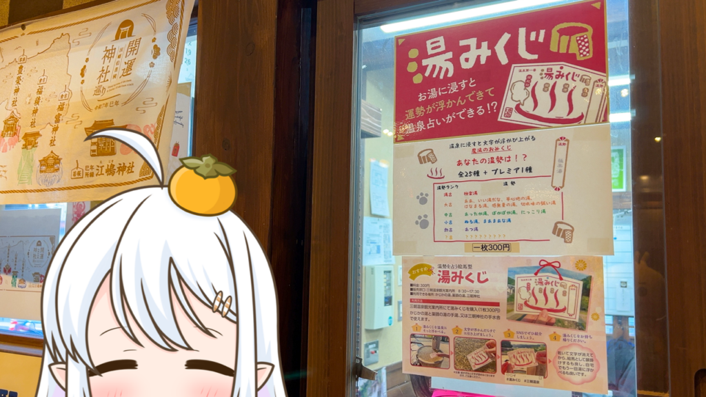 「湯みくじ」を楽しめるという事で、私も「かじかの湯」で温勢を占ってきましたっ