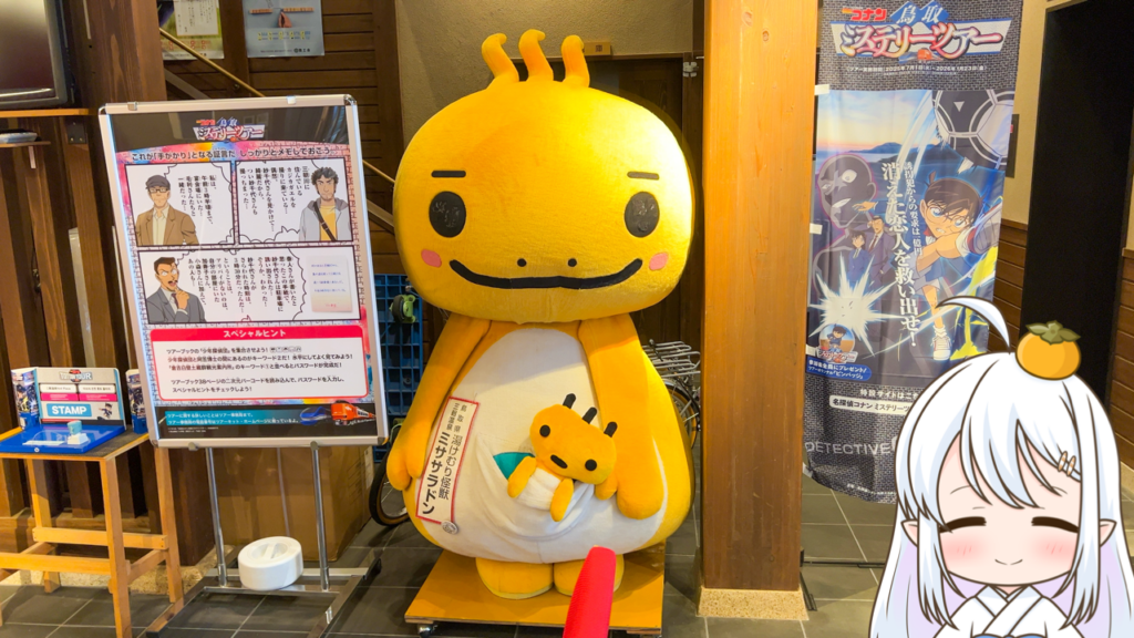 「温泉むすめ」の「三朝歌蓮」ちゃんにもご挨拶しつつ…私も一緒に仮装しながら、みなさんをお待ちしてますよ〜