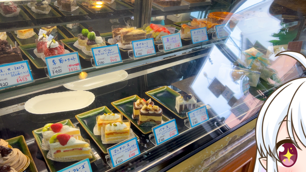 ケーキ屋さんの中に喫茶店もあるので、「ケーキ」を選んでそのまま食べる事ができるんですっ