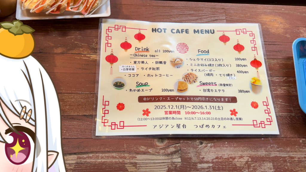 …あ、「つばめカフェ」さんの「ライチ紅茶」と「シュウマイ」を食べちゃったのは…内緒です〜