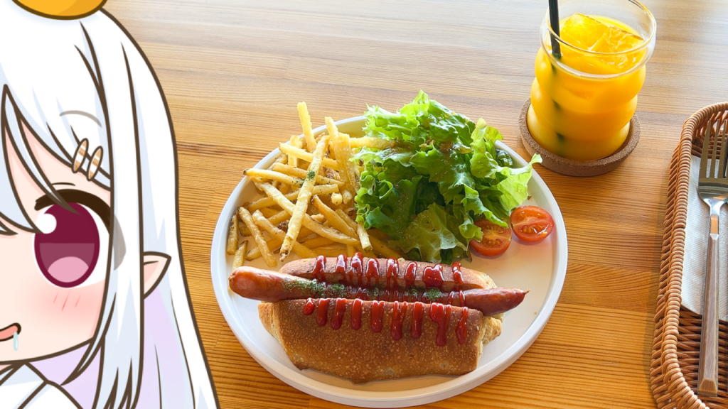 「もち麦ロールパンのあらびきソーセージドッグ」と「タロイモドーナツとバニラアイス」を頂きましたよ〜