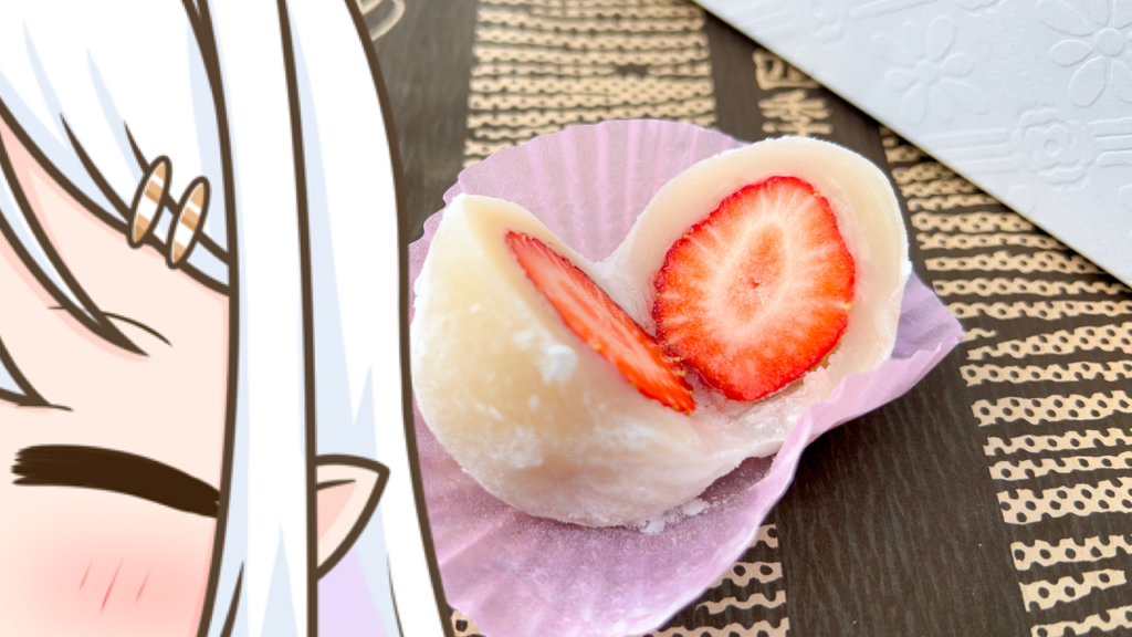モチモチの生地と優しい甘さの白あんに包まれた、ジューシーで大きないちごっ