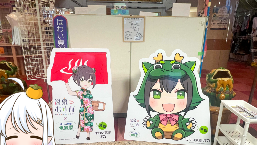 「温泉むすめ」の「はわい東郷浮乃」ちゃんにも会えますし、グッズもいっぱいっ