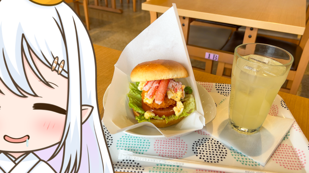 という事で、「かにかにバーガー」と「二十世紀梨ジュース」のセットを頂きました〜