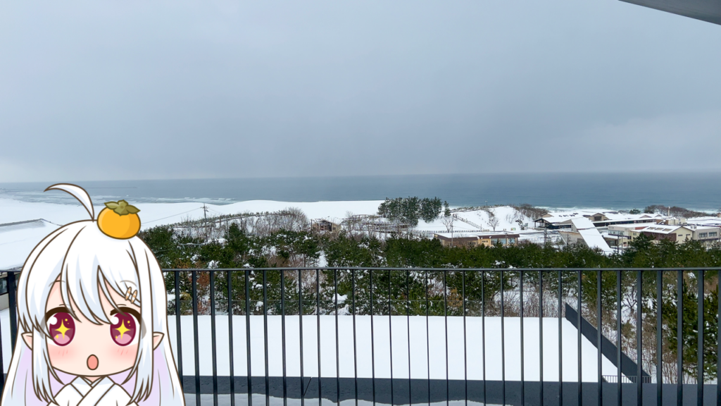 その名の通り眺望テラスからの見晴らしはとっても綺麗で、雪の砂丘がよく見えましたよ〜