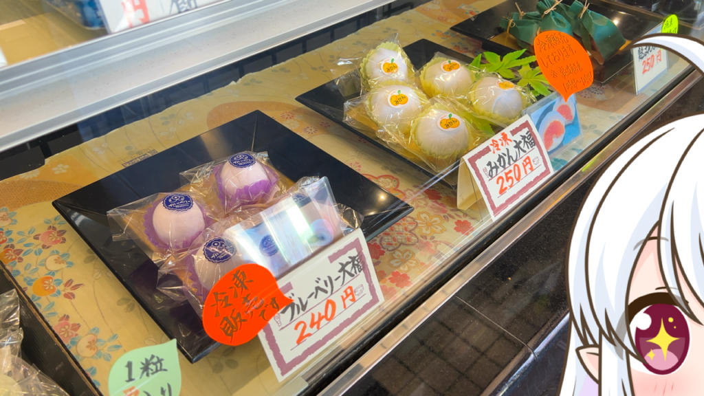 白あんと相性ピッタリのブルーベリーの「ブルーベリー大福」に、たっぷりのみかんが中に入ったジューシーな「みかん大福」、そして人気の「鹿野ぱんまん」と「鹿之助」ももちろん食べちゃいましたよ〜
