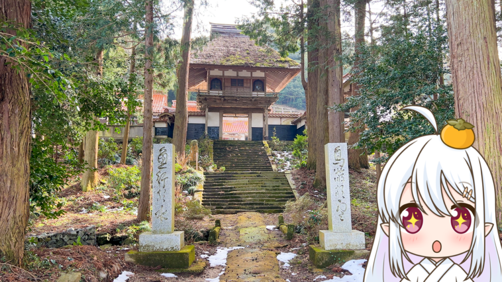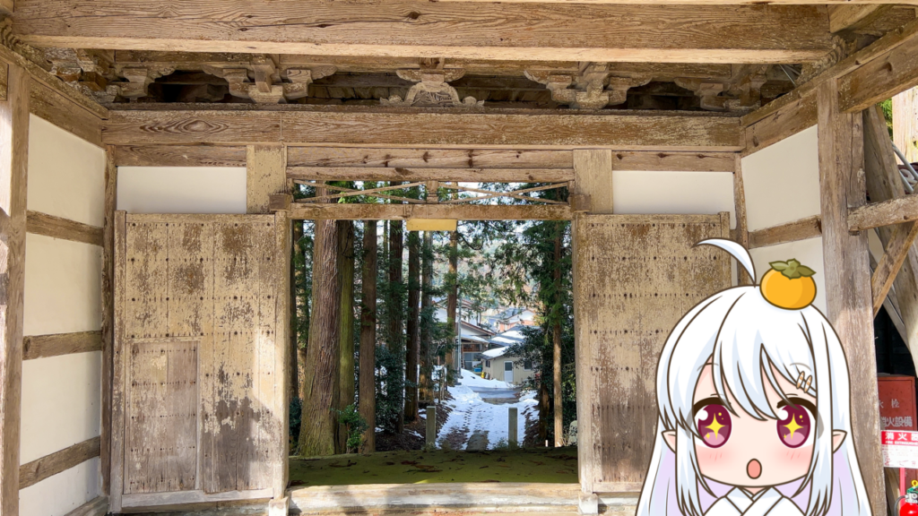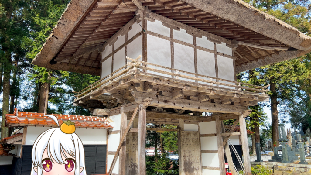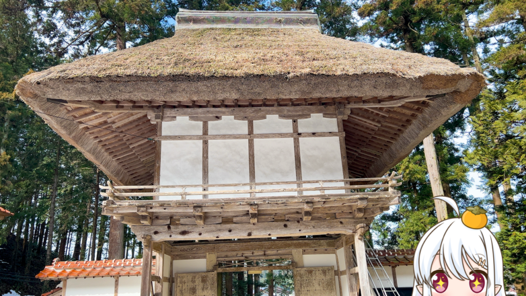 茅葺寄棟造りの山門楼上には、この門をくぐる参拝者の願い事を叶えて下さるという言い伝えの残る「金色寳光妙行成就王如来」坐像が安置されているんですっ