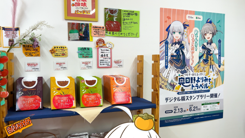 「道の駅にちなん日野川の郷」さんの店内には、「駅メモ」の「生山ほたる」ちゃんのパネルやグッズもあるので、ぜひ巡ってみて下さいね〜