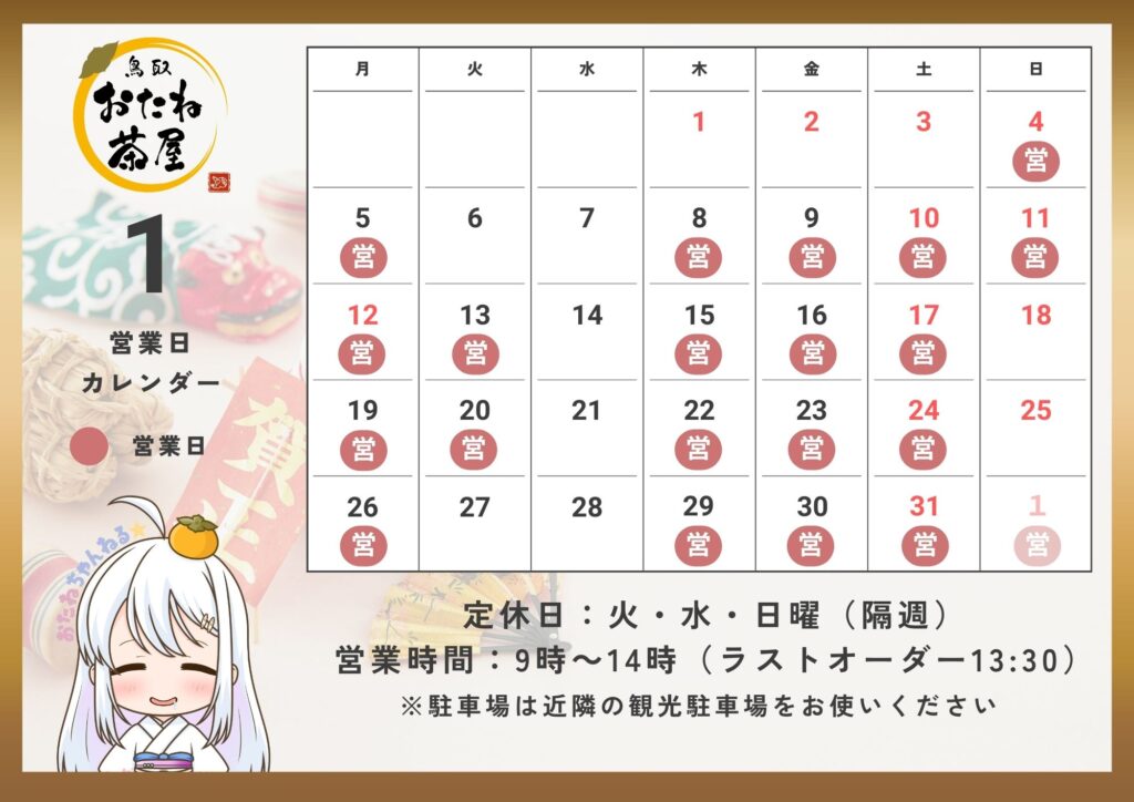 4日(日)~ 鳥取おたね茶屋 新春企画!