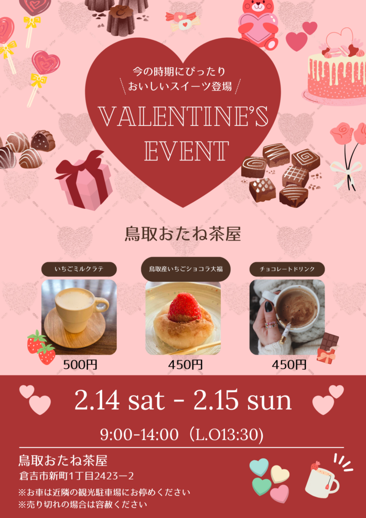 14日(土)~15(日) 鳥取おたね茶屋 バレンタインイベント♡